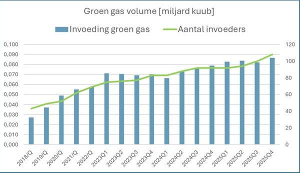 14% meer groen gasproductie in 2025 – aantal invoeders passeert de 100